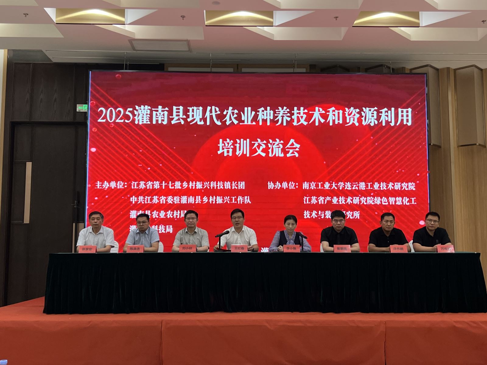 为进一步推动现代农业产业高质量发展,提升现代农业种养和资源利用技术成果转化,助力乡村振兴再提速,由江苏省第十七批乡村振兴科技镇长团、中共江苏省委驻灌南县乡村振兴工作队、灌南县农业农村局、灌南县科技局主办,南京工业大学连云港工业技术研究院、江苏省产业技术研究院绿色智慧化工技术与装备研究所协办的“2025灌南县现代农业种养技术和资源利用培训交流会”于7月24日下午在灌南县成功举办。灌南县人民政府党组成员、连云港市第十七批乡村振兴科技镇长团团长王红春,我院常务副院长、江苏省产业技术研究院绿色智慧化工技术与装备研究所副所长刘小祥,灌南县科学技术局局长李小艳等出席活动。